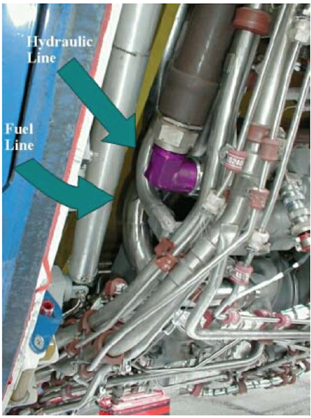 - The mismatched installation of the pre-mod hydraulic tube and the post-mod fuel tube resulted in the tubes coming into contact with each other, which resulted in the fracture of the fuel tube and the fuel leak, the initiating event that led to fuel exhaustion.