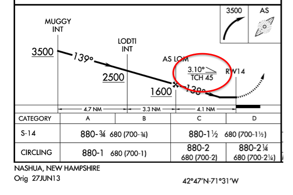 - There is no dotted gray line to the runway, which would indicate a vertical descent angle.