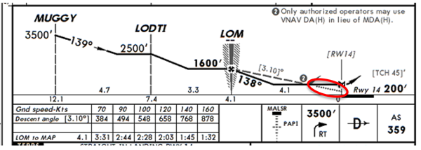 C073 is now available also as a Letter of Authorization. These approaches, those with the "Only Authorized Operators" ball note, take into consideration the aircraft's momentary dip below the MDA.
