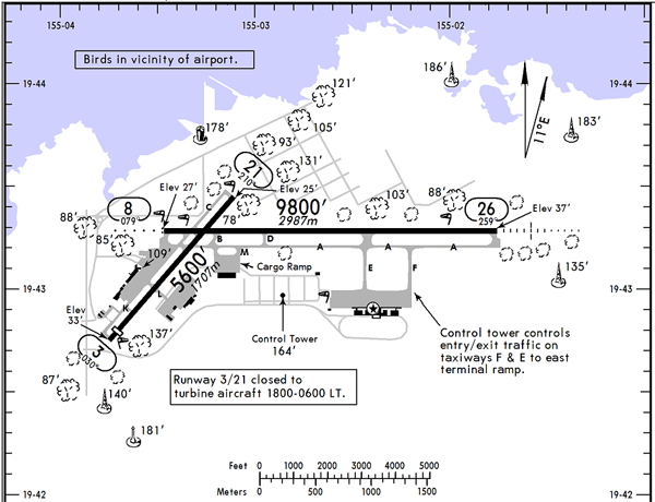 Looking at the airfield diagram we see three obstacles within a mile of the approach end of the runway that will required visual maneuvering at the last moment.