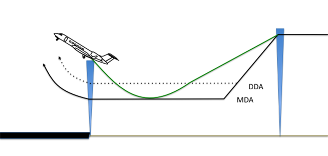 - Even if you succeed at leveling off at the MDA, you need to keep the airplane there until the runway is spotted and the airplane is in a position to land.