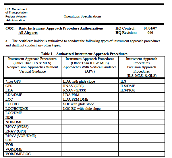 Commercial operators will need to have RNAV (GNSS) listed as an approved approach type in their operations specifications (C052, or equivalent).