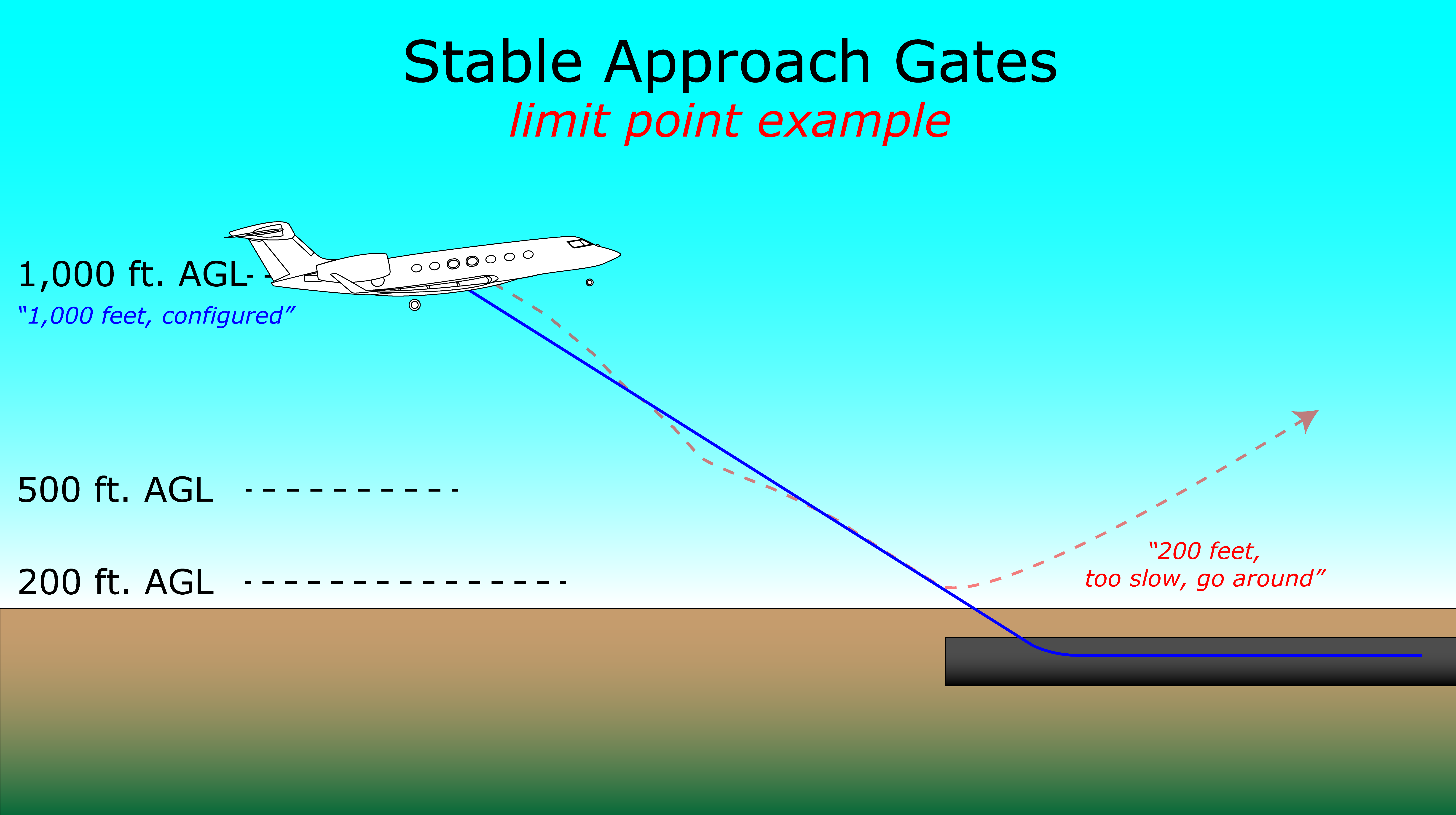 - 500 ft. gate. This gate is used to check all stable approach criteria. The criteria should be delineated in company SOPs. See the sidebar, “The recommended elements of a stabilized” for an example list.