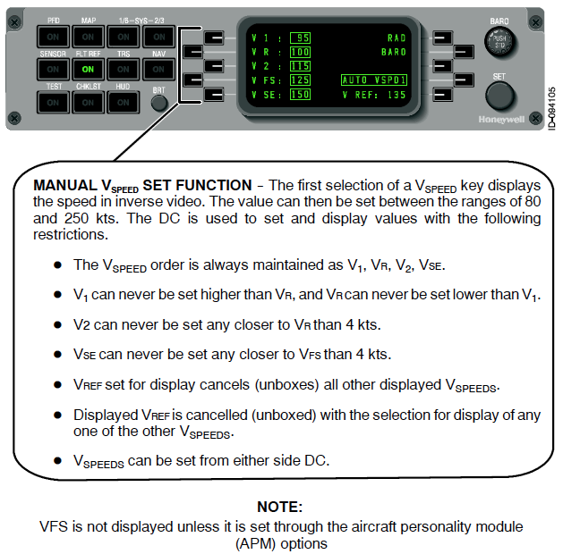 VFS is not displayed unless it is set through the aircraft personality module (APM) options.